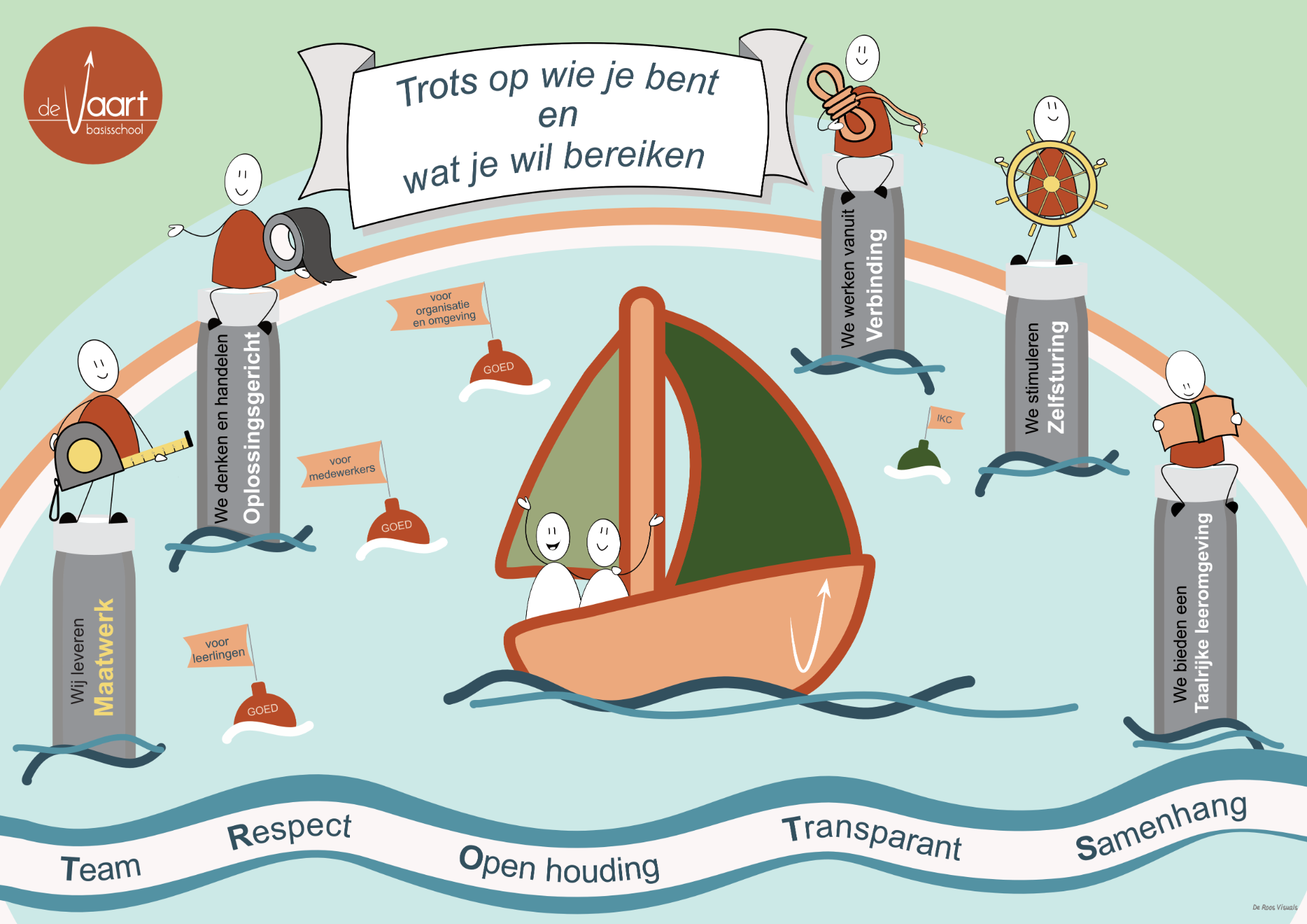 Het schoolplan hebben we vertaald in beelden waarbij we onze ambities als meerpalen hebben weergegeven.